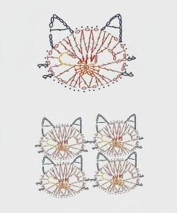 The scarf is built from multiple lightweight lace motifs shaped like tiny cat heads — each one joined together to create a soft, flowing fabric. While the original source offers only the chart, this written pattern helps beginners and visual learners understand each round step-by-step, making the project more accessible and enjoyable for crocheters of all levels.