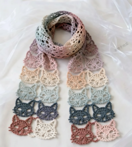 This interpretation aims to honor the inspiration of the original chart while providing a clearer pathway for crocheters who need written guidance. Whether you’re making your first lace scarf or adding something unique to your handmade wardrobe, this cat-motif pattern is a joyful and rewarding project to stitch.