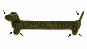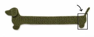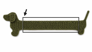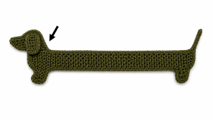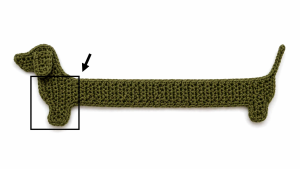 1. Attach yarn on the dog’s back, about 5 rows from the end