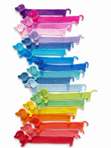 The dachshund, often lovingly called a “sausage dog”,  is known for its long body and short legs, and that makes it absolutely perfect for a bookmark design. As you crochet, you’ll see your little pup slowly come to life, starting from the back legs and growing into that long, adorable shape.